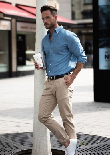 Dân văn phòng kết hợp quần kaki với áo sơ mi rất phong cách