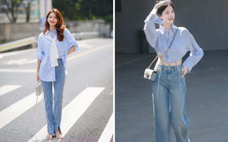 4 cách phối sơ mi sọc đơn giản, nhẹ nhàng